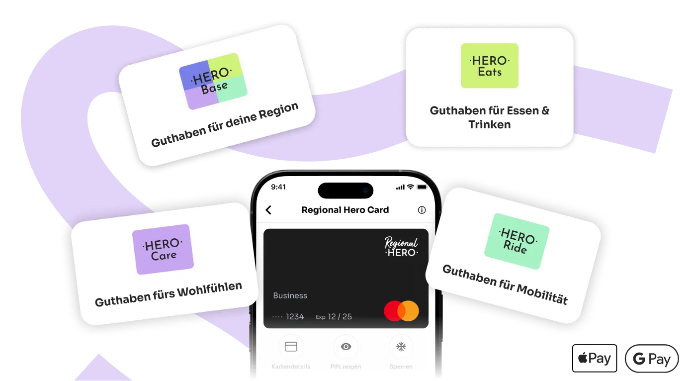 Mit steuerfreien Sachbezügen über Regional Hero wird dein Unternehmen zum echten Helden. Voll digital und ganz unkompliziert.