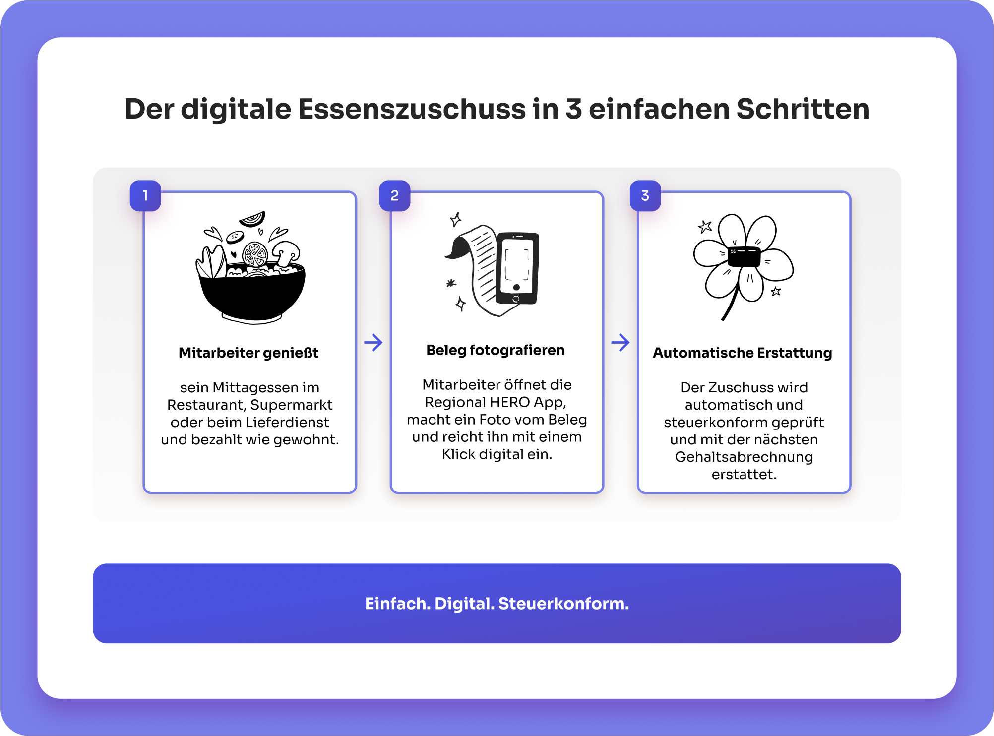 Die Zukunft ist digital, und hier kommt HERO Eats von Regional Hero ins Spiel. Diese Lösung transformiert den Essenszuschuss von einer bürokratischen Hürde in einen nahtlosen und motivierenden Benefit: